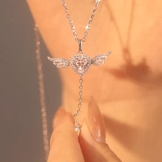 The angel wing motif represents love, protection, and inner peace . Its delicate curves and luminous stones create a soft brilliance that enhances your neckline effortlessly ✨.