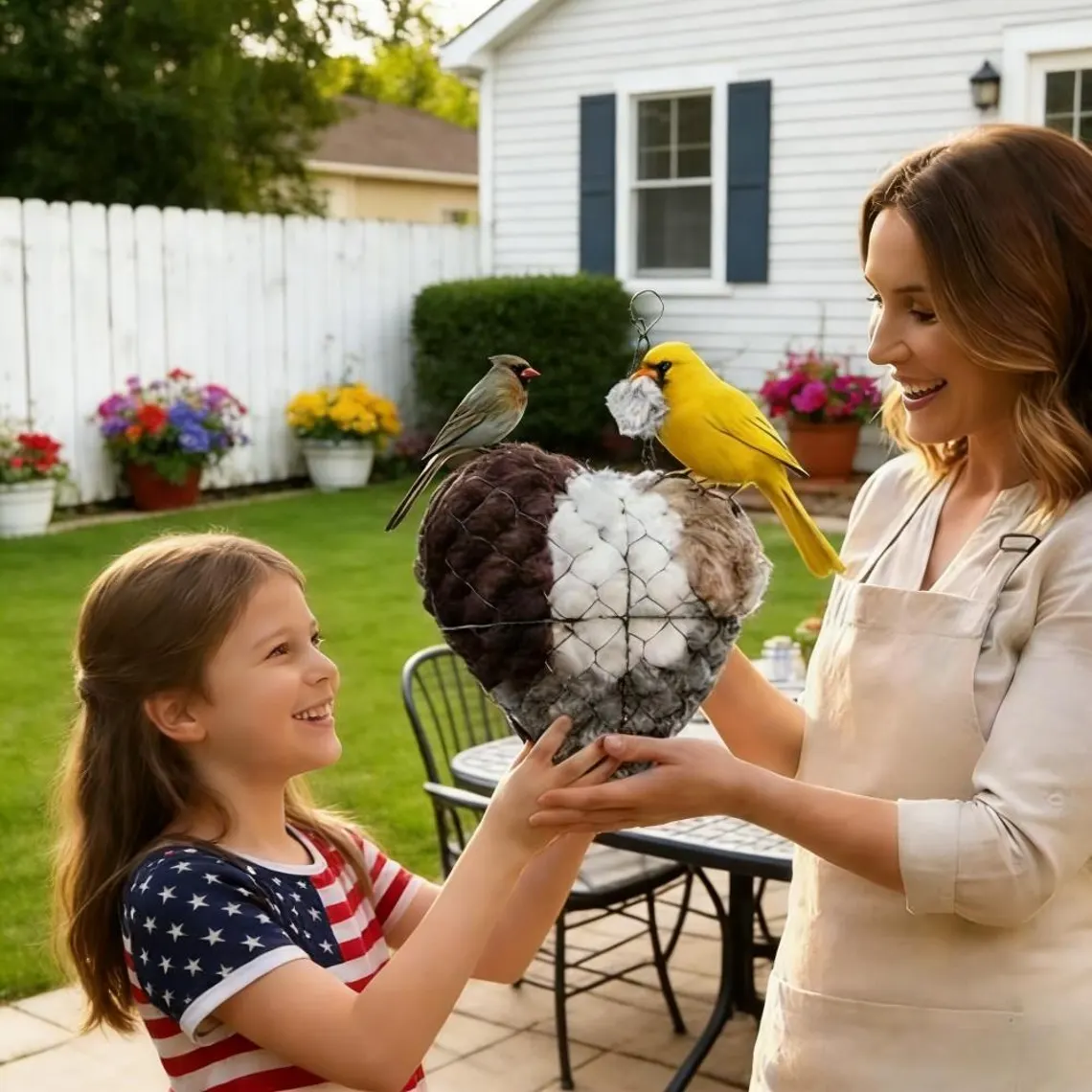 It’s both a sweet decoration and a practical nesting helper—birds can gently pull fibers to line their nests. 🌿✨