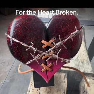 【❤️ Broken Wood Heart + Steel Pedestal – A Darkly Romantic Statement! ❤️】