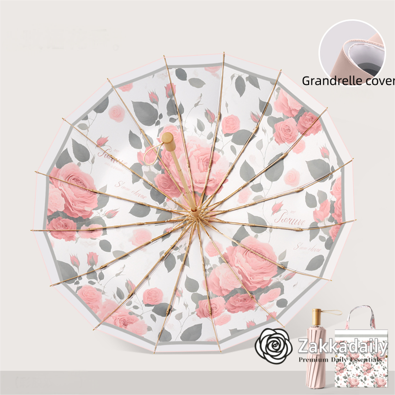 IDEAL CHOICE✔️✔️✔️: The exquisite umbrella is made of brass⚒, the surface is smooth and does not hurt your hands, is safe and durable,double layer waterproof cloth cover has good waterproof performance, is not easy to fade, is light and easy to carry, it is your ideal choice.16 ribs of the umbrella make it have excellent wind resistance performance and durability☑️.