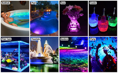 13 LED, 20 Hours Long, Display, More Bright, More Durable: Our waterproof lights have 13 premium LEDs, it’s 3 times more bright and vivid than other submersible lights which only have 10 LEDs, these lights will brighten your space.