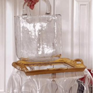 Crystal clear like a luxury accessory💎💎, sleek like a designer handbag—meet the Glass Collection: a viral-worthy handbag-shaped vase💼💼 and matching wine bottle🍷🍷, where fashion flair blends seamlessly with everyday home charm🏡🏡