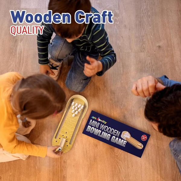 This compact wooden mini bowling set brings the thrill of a real alley right to your home, office, or party—perfect for quick games anytime. No need for big spaces; just set it up and start rolling!