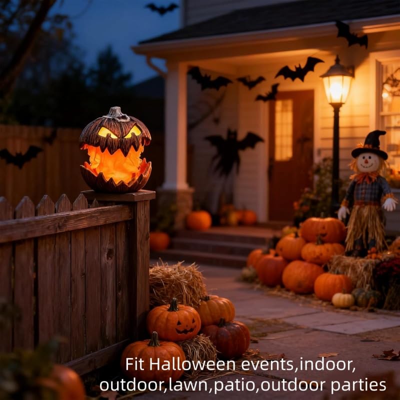 🎃👻【 Wide Applications 】 This Spooky Light up Pumpkin for Friends and Family. Perfect for Indoor and Outdoor Halloween Decorations. Suitable for Halloween Party, Lawn, Front Porch, Yard, Garden or Place Anywhere Outside Your Home. The Scary and Realistic Effect, And It Will Definitely Add Spooky and Fun Feeling to Your Halloween.