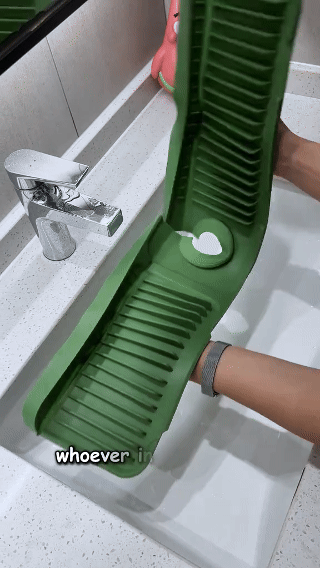 This longer faucet mat catches splashes and drips right where they happen, then guides water back into the sink. Your faucet base stays cleaner and your countertop stays drier with way less effort. 💦
