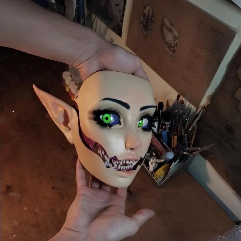 Application Scenarios: This mask can be used for Halloween and themed parties, helping the wearer quickly immerse in a fantasy or dark atmosphere. It can also serve as an artistic creation displayed at craft exhibitions or studio showcases, highlighting the creator's style.