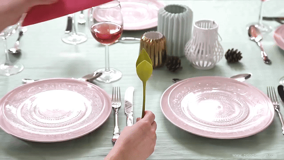 CREATE COLOURFUL FLOWER PETALS WITH BLOOM NAPKIN HOLDER: Insert a folded PAPER NAPKIN in the designated slot and twist. It’s that simple When folded, Bloom Napkin Holder forms a beautiful and elegant flower bud that can be showcased on a table, platter, vase, or plate